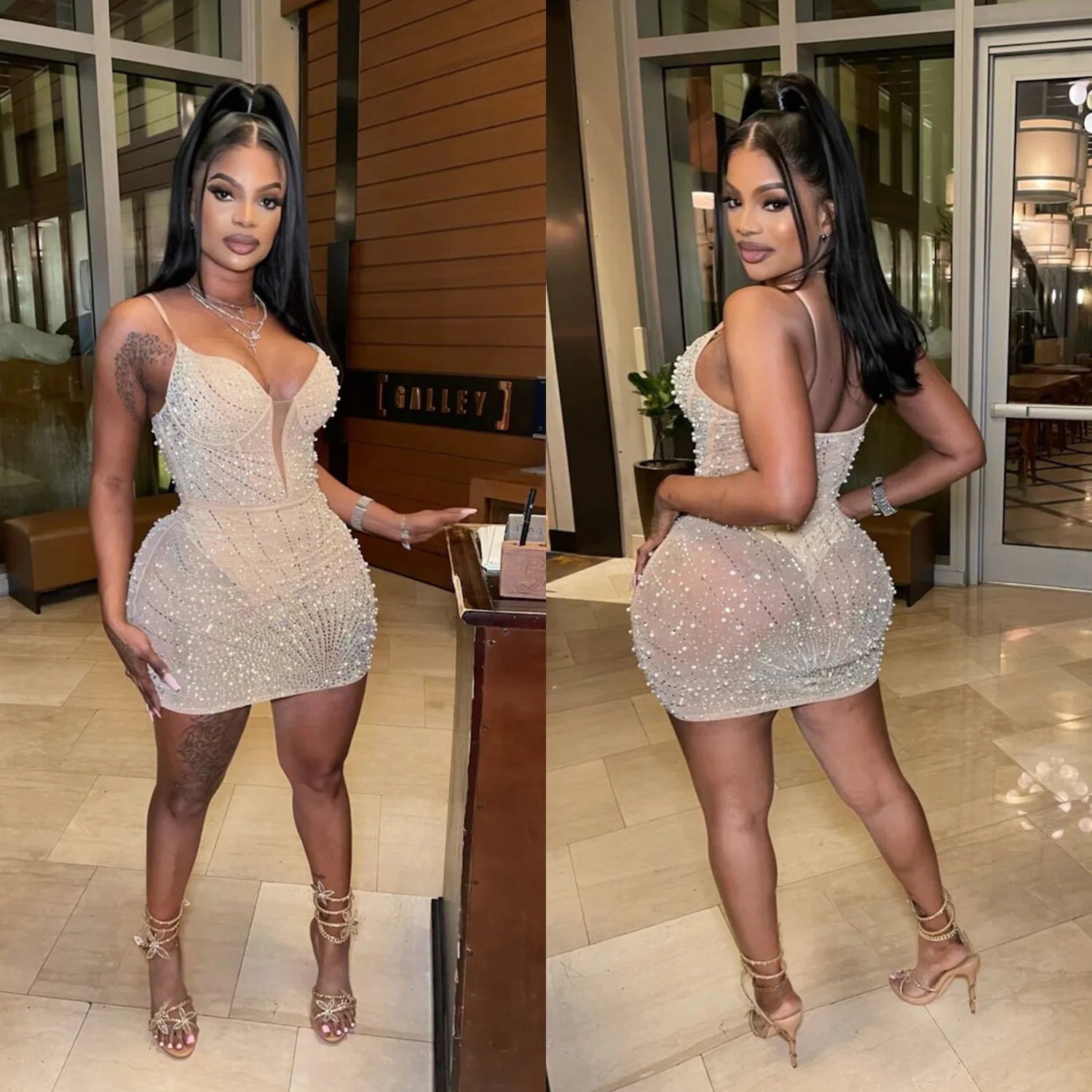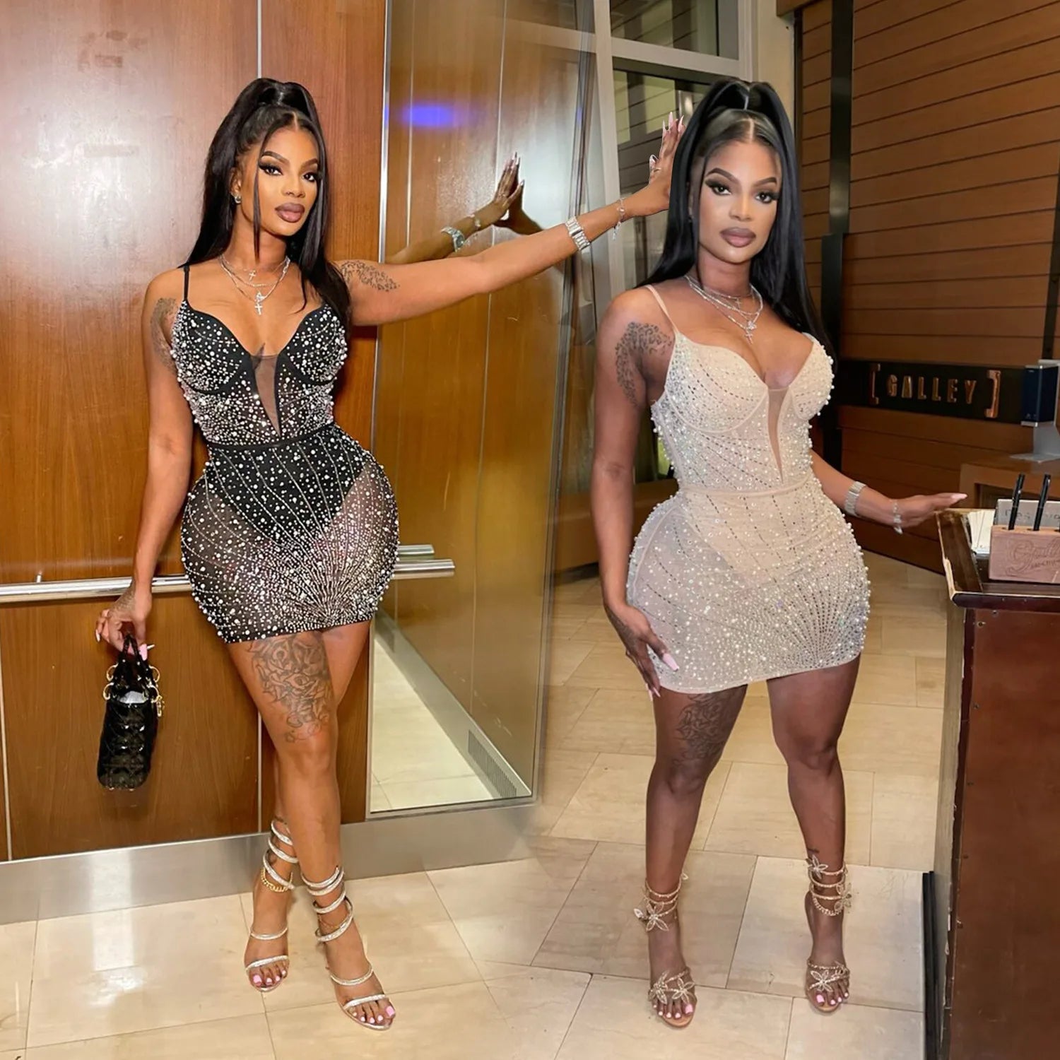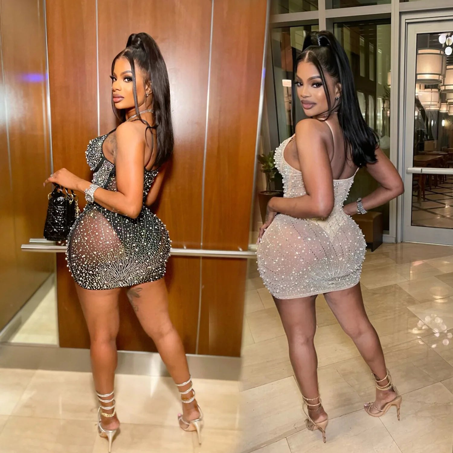 Elevate your evening wardrobe with our exquisite Diamond Bead Dress. This stunning piece features luxurious nail bead detailing that catches the light beautifully, creating an elegant shimmer with every movement.